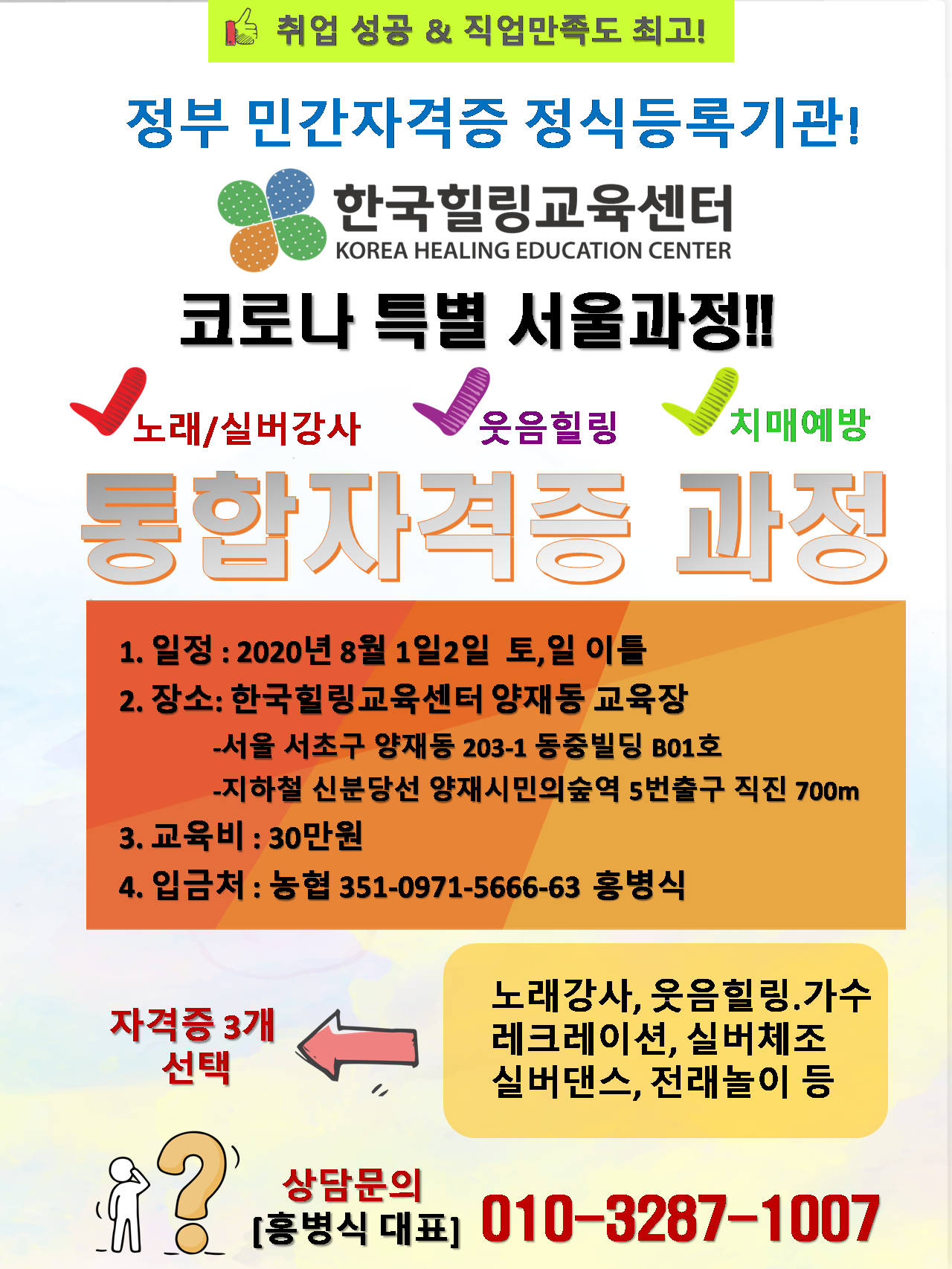 서울노래강사.웃음치료사 실버통합자격증과정 코로나특가 모집중