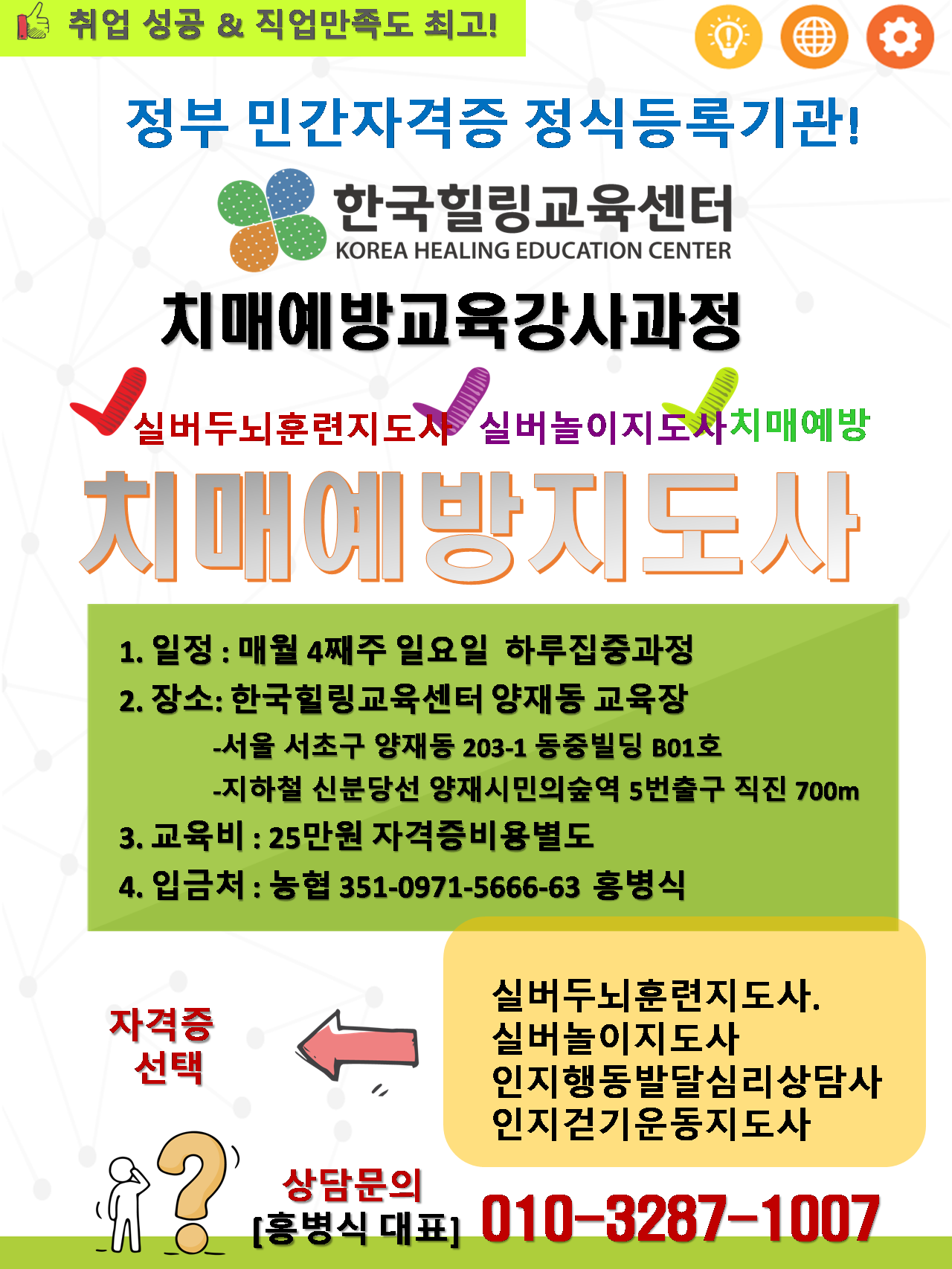 치매예방지도사과정 매월4째주 일요일 하루과정 모집